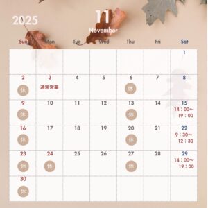 15日、29日は 14:00~19:00までの営業とさせて頂きます。