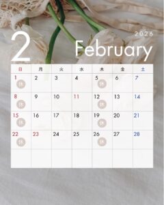 2月の営業日のお知らせ 2026.02.03 2月の営業日のお知らせです。11日(水曜日)は、祝日ですが通常営業致します。23日(月曜日)は、9:30 ~ 12:30までの営業とさせて頂きます。よろしくお願いいたします。 記事のタイトルとURLをコピーする Post Share Hatena Line RSS feedly Pin it note 1月の営業日のお知らせです前の記事 重要なお知らせ次の記事